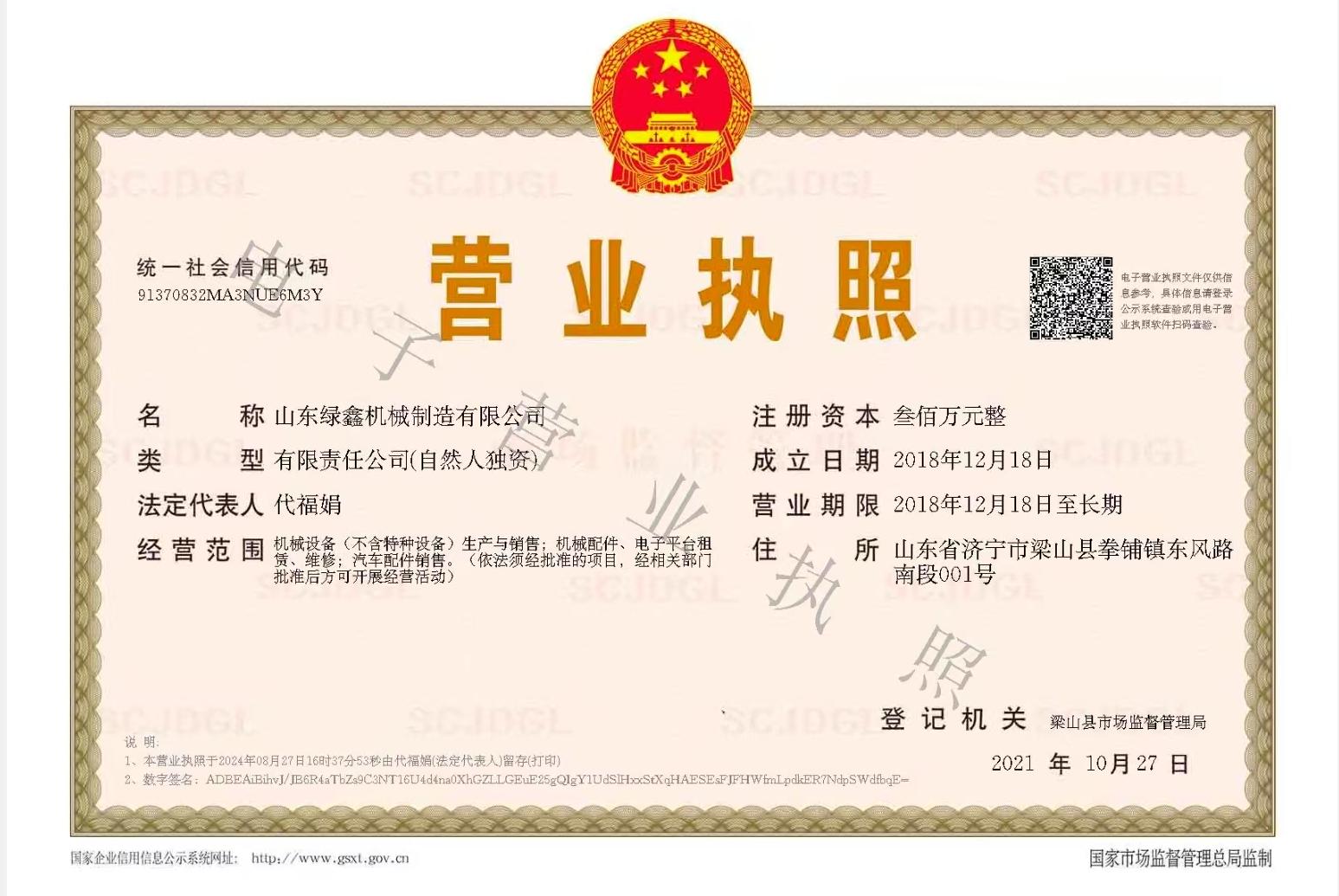 山东绿鑫机械主要生产